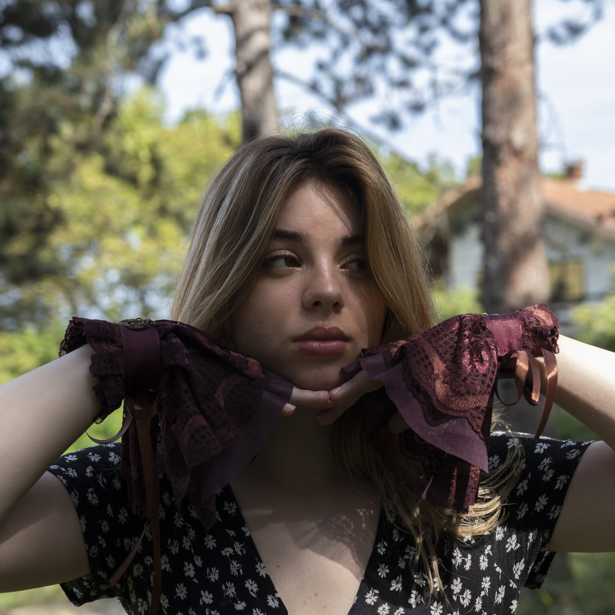 Materijal izrade: Čipka, mrežica, rips traka, metalni privesci i lanac
