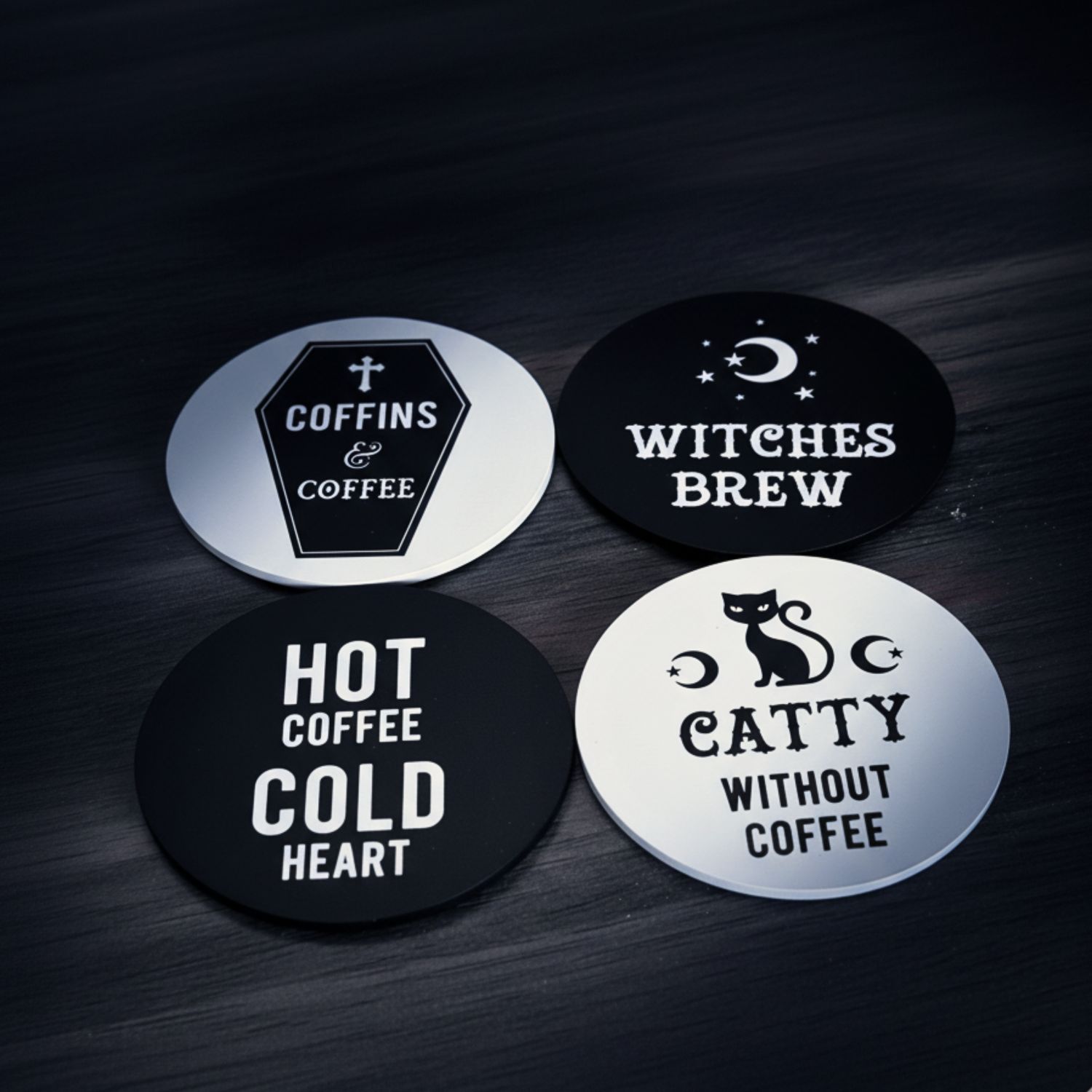 U setu od 4 dobijaš crno-bele šaljive Witchcraft podmetače za svakodnevno korišćenje! 👻